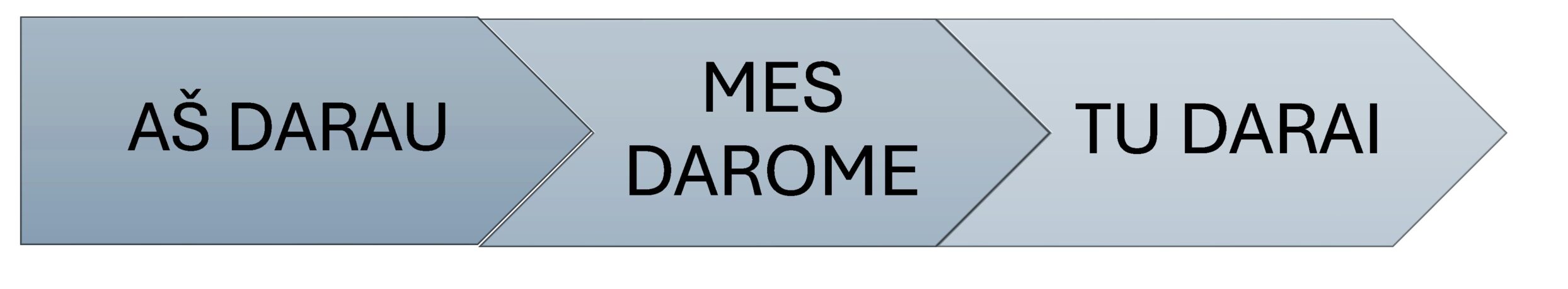 „Aš darau → Mes darome → Tu darai“.