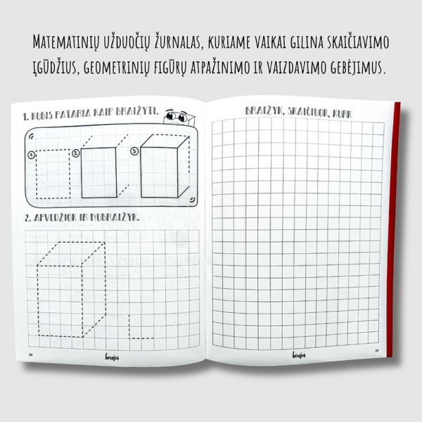 Kubis yra matematinių veiklų knygelė, kuri puikiai tinka vaikams, norintiems lavinti užduočių sprendimo ir samprotavimo įgūdžius. Matematinių užduočių žurnale, vaikai gilina skaičiavimo įgūdžius, geometrinių figūrų atpažinimo ir vaizdavimo gebėjimus, mokosi mąstyti, taikyti skirtingus tekstinių uždavinių sprendimo būdus.